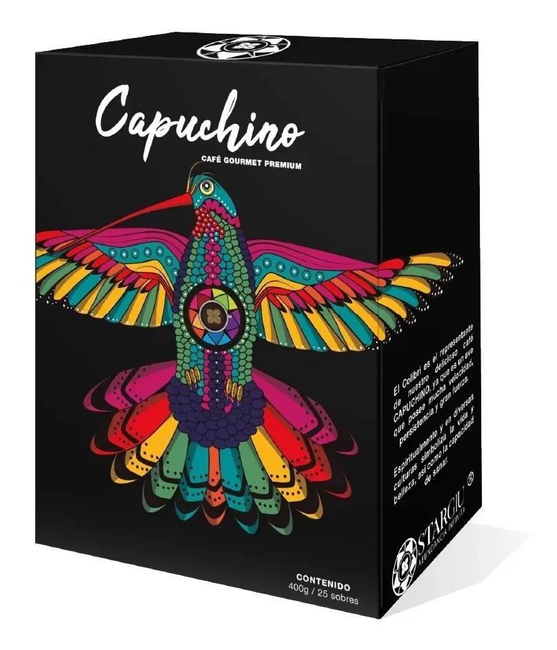 Capuchino Café Orgánico Gourmet STARGIU – Mezcla Especial | 300 g El capuchino café orgánico gourmet de STARGIU adicionado con zeolita y algas marinas desintoxica, balancea y aumenta tu energía naturalmente. ¡Un café que cuida tu salud! Presentación: Caja con 25 sobres | Contenido neto: 300g |