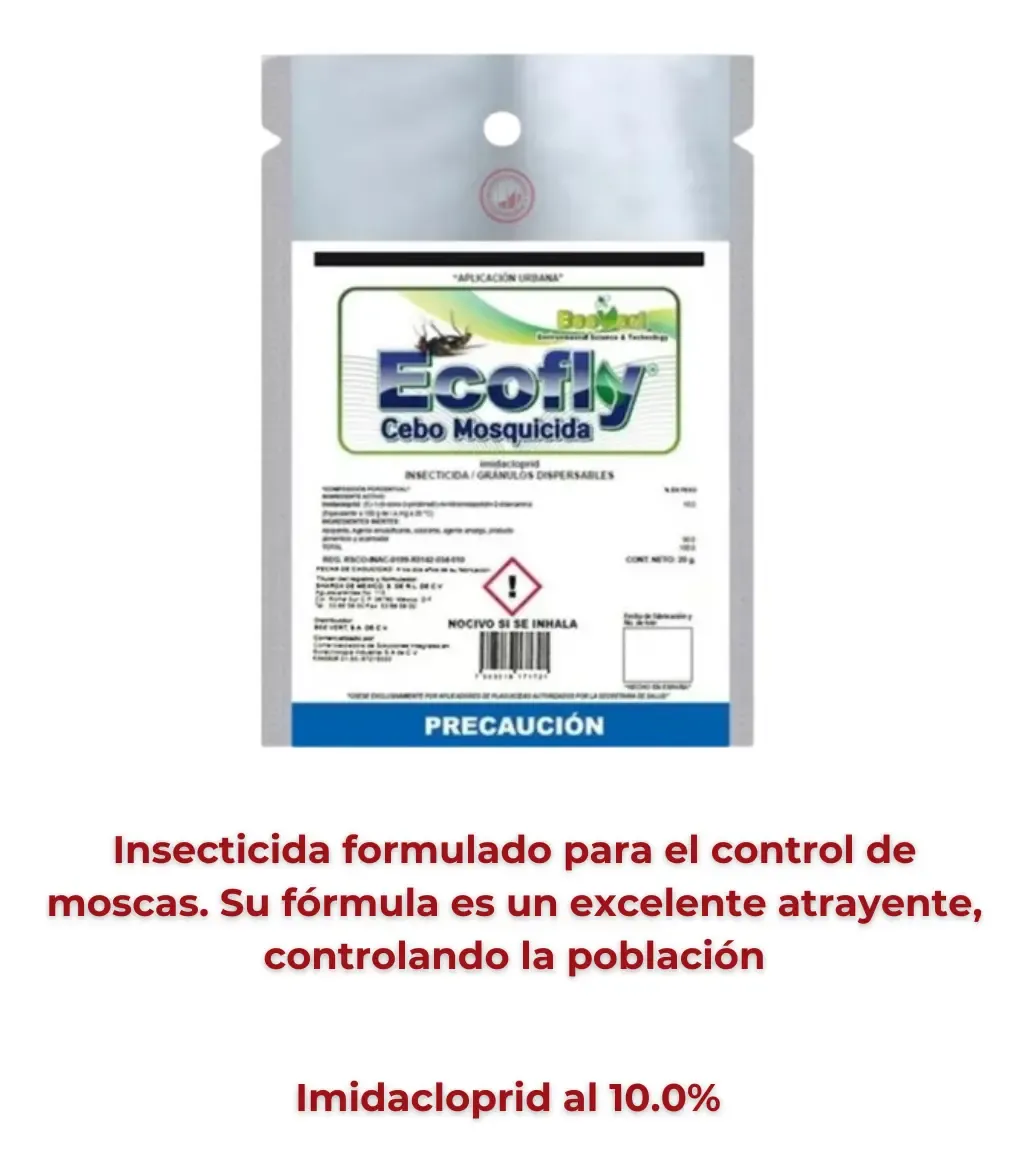 Cebo Moscas Eco Fly 3 Sobres 20 Gramos c/u Beevert Modelo ECFL-002 Contiene un nuevo ingrediente activo con un modo diferente de acción para el control de moscas resistentes a