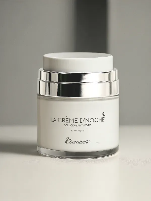 DESCRIPCIÓN: Hidratante facial anti edad con efecto ultralift que reconstituye las células de la piel del rostro durante la noche, ayudando a tener una piel luminosa con tono uniforme evitando las manchas. Alta concentración de ingredientes activos como Ácido Kójico, Ácido Hialurónico, Péptidos Hidrolizados, Colágeno, Elastina, Antioxidantes, Minerales y Aceite Esencial de Geranio. MODO DE USO:
