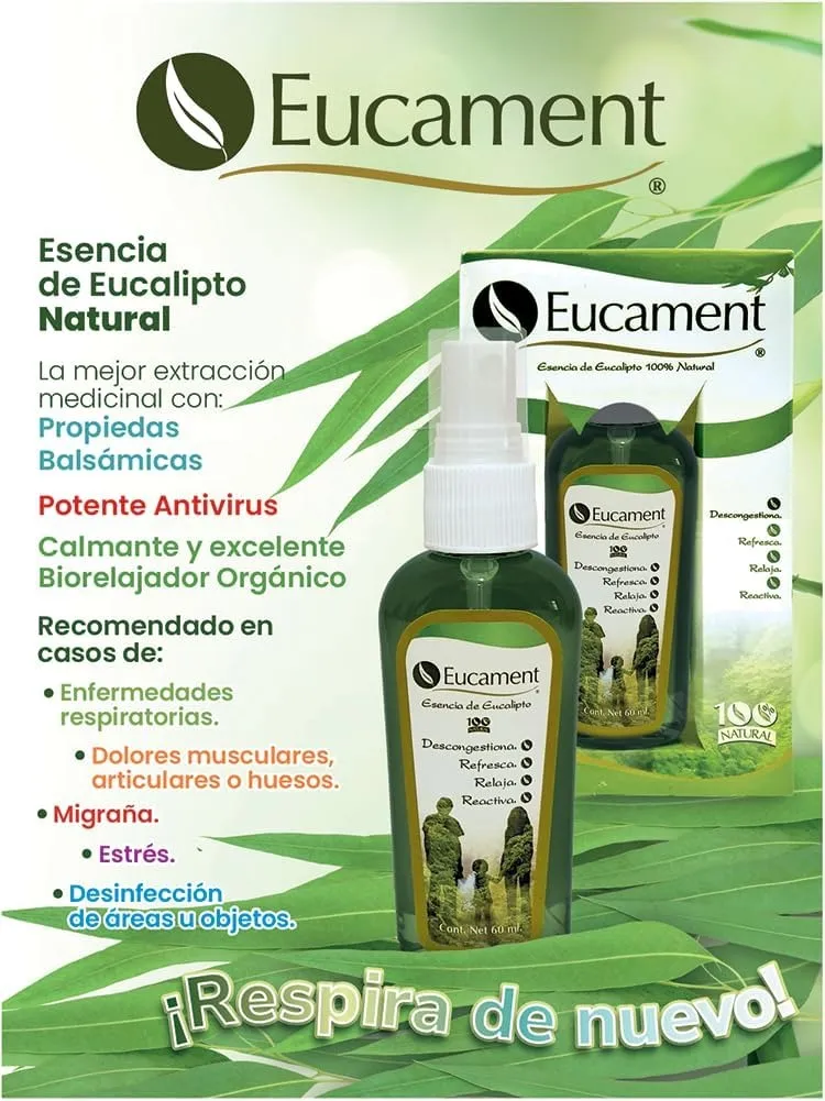 La Esencia de Eucalipto de Eucament con extractos naturales es un producto que se distingue por sus múltiples beneficios para la salud y el bienestar general. Gracias a su origen natural, ofrece propiedades refrescantes, purificantes y revitalizantes que lo convierten en un aliado indispensable en el hogar y en el cuidado personal. Su principal bondad radica en su capacidad para ayudar a despejar las vías respiratorias, favoreciendo una sensación de alivio en casos de congestión nasal, resfriados o malestares comunes de la temporada. El eucalipto es reconocido por su acción expectorante y antiséptica, lo que contribuye a mejorar la respiración y promover un ambiente más saludable. |