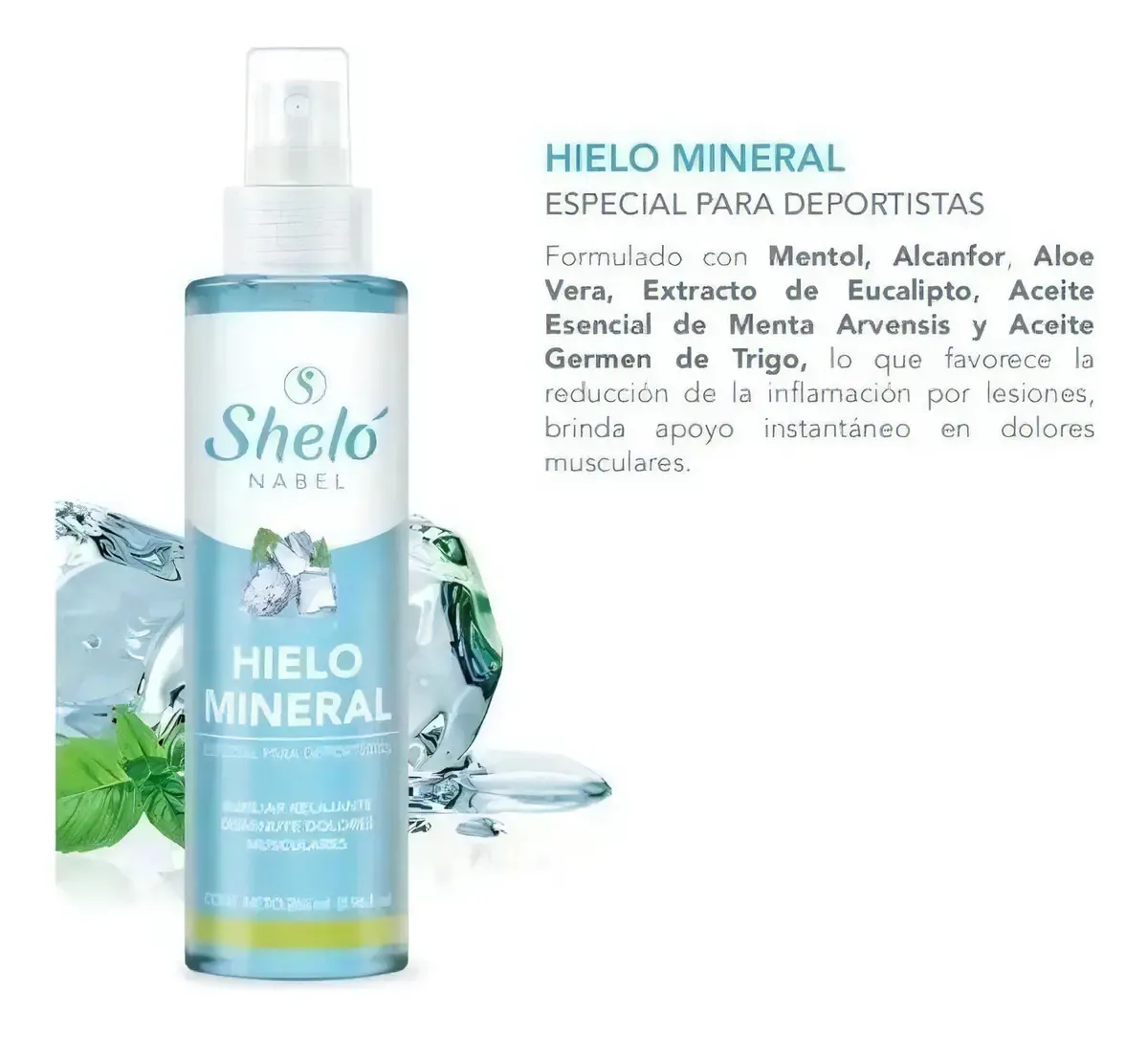 Potente sensación de frio calor Hielo mineral Formulado con mentol, alcanfor, Aloe Vera, Extracto de eucalipto, Aceite esencial de Menta, Arvensis y Aceite Germen de Trigo, lo que favorece la reducción de la inflamación por lesiones, brinda apoyo instantáneo en dolores musculares. ¡Bienvenido al oasis de alivio para tus músculos cansados! Sumérgete en la frescura restauradora de nuestro Hielo Mineral Relajante Muscular, una maravilla natural que revitaliza y rejuvenece tu cuerpo después de un día lleno de actividad. Nuestra fórmula única fusiona los beneficios terapéuticos del hielo con los poderes minerales de la naturaleza, ofreciéndote un remedio poderoso para tus dolores musculares y tensiones. Elaborado con minerales puros y enriquecido con extractos botánicos seleccionados con esmero, este hielo mineral no solo calma tus músculos, sino que también revitaliza tu piel, dejándola suave y radiante. ¿Qué hace que nuestro Hielo Mineral Relajante Muscular sea tan especial? Aquí tienes algunos de sus increíbles beneficios: Alivio Instantáneo: La combinación única de frío y minerales penetra profundamente en tus músculos, brindando alivio instantáneo y duradero. Recuperación Acelerada: Ayuda a acelerar el proceso de recuperación muscular después del ejercicio intenso o actividades extenuantes. Relajación Profunda: Despierta tus sentidos con una sensación refrescante que calma tu cuerpo y tu mente, proporcionando una relajación profunda y revitalizante.