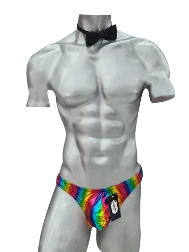 La elección de una tanga, por su naturaleza minimalista, destaca la audacia y la confianza del hombre que la lleva. Los colores vivos del arcoíris crean un contraste visual llamativo, rompiendo con las convenciones y añadiendo un toque de diversión y energía a la moda íntima masculina.