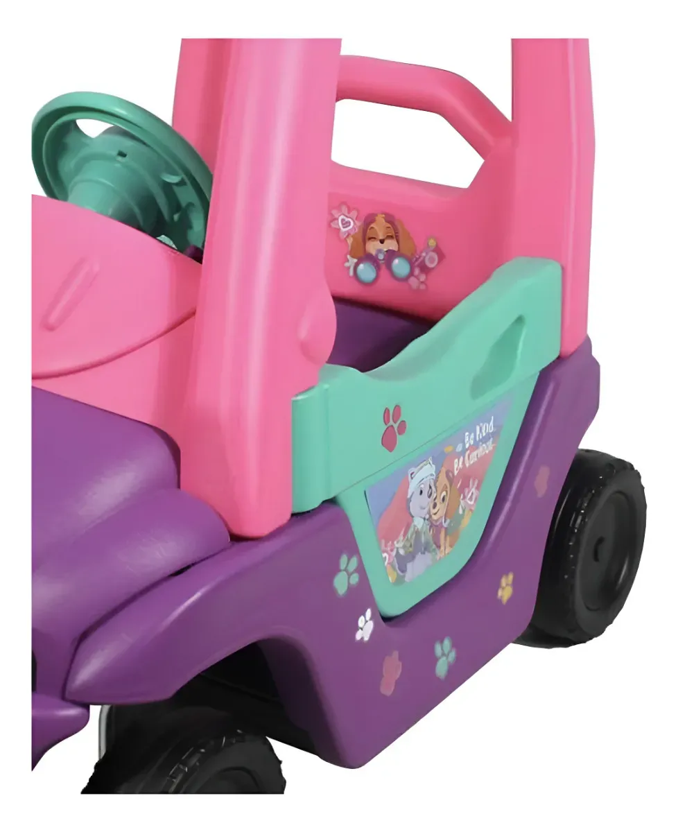 -DISEÑO:inspirado en el personaje skye de paw patrol con colores rosa y morado. -EDAD RECOMENDADA:ideal para niños de 19 a 36 meses. -CARACTERISTICAS:claxon,puerta funcional, tapa de gasolina y reposapies extraible. -FUNCIONALIDAD:cuenta con piso removible para que los niños puedan impulsarse con sus pies. |