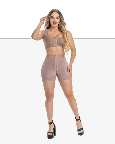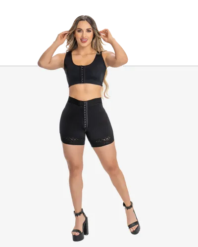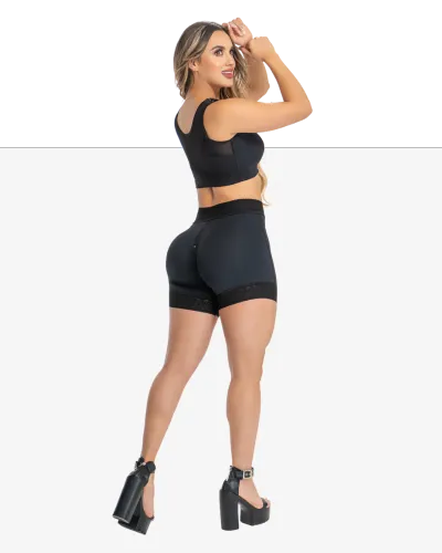 Short levantacola invisible a la cintura con control de abdomen, 3 niveles de broches en delantero que se ajustan a tu silueta, cuenta con encaje siliconado en piernas, no se marca al utilizar prendas ajustadas, cremallera perineal para mayor comodidad, caucho ancho siliconado que evita que se enrolle, diseño interno que realza los glúteos de manera cómoda y natural. |