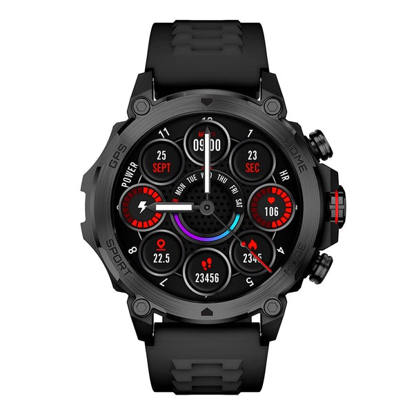 ¡Conoce el nuevo Kronos Thunder de STF! Este smartwatch no es solo un reloj, es tu compañero perfecto para cualquier aventura. Con su pantalla AMOLED de 1.43", sumérgete sin preocupaciones gracias a su resistencia de 5ATM. Contesta llamadas directamente desde tu muñeca y mantén el control con GPS, altitud, barómetro y brújula integrados.