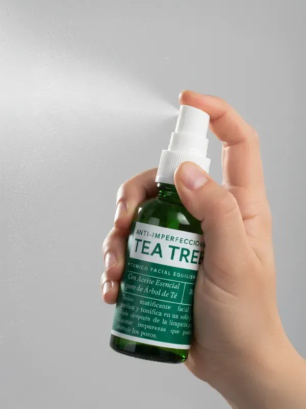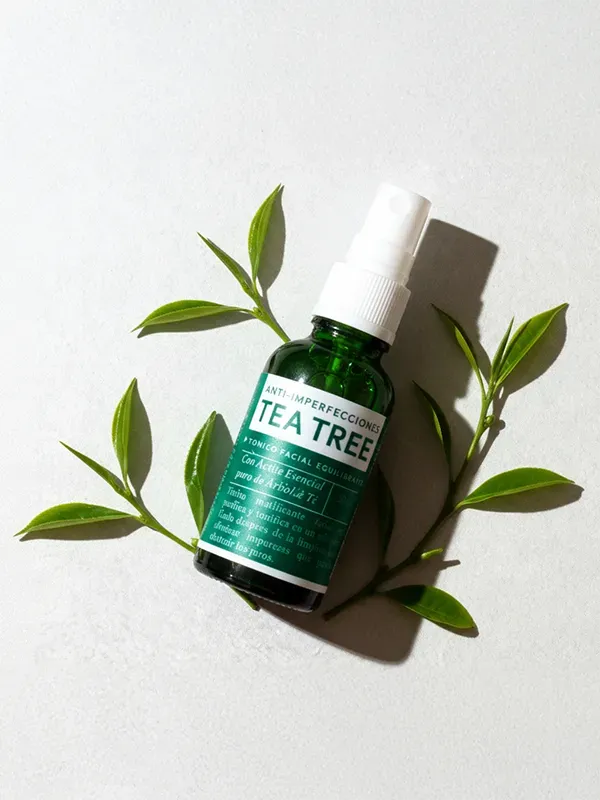 TÓNICO FACIAL EQUILIBRANTE TEA TREE (Anti-imperfecciones) COMPOSICIÓN: Aceite Esencial de Tea Tree, Agua, Propilenglicol, Alantoina, Mentol, Alcohol Etílico, Ácido Glicólico, Twin20 y Symsave. BENEFICIOS: - Tónico que minimiza los poros y deja la piel limpia, fresca, tonificada y visiblemente más clara. - Controla el exceso de brillo facial. - Equilibra el pH del rostro. MODO DE USO: - Aplique con un algodón 2 veces al día sobre el rostro después de la limpieza facial. - Úsalo con el resto de la línea de Tea Tree.