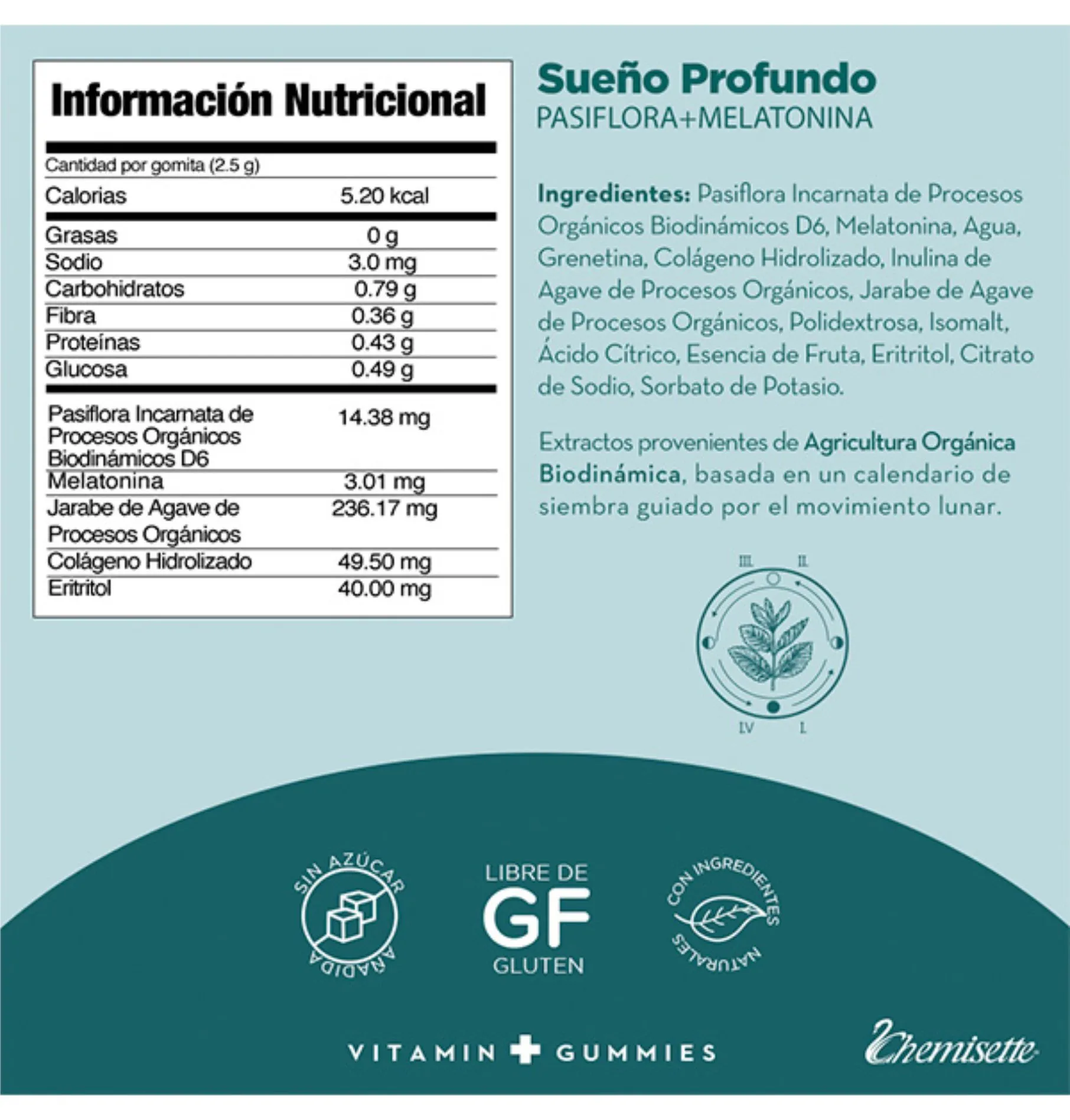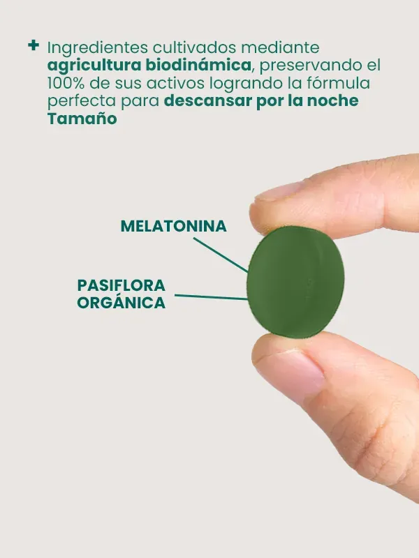 BENEFICIOS: Auxiliar natural para descansar y dormir más rápido, más profundo y con mejor calidad. Ayuda a eliminar el insomnio y restaurar el ciclo de sueño. Promueve el balance hormonal, regulación del apetito y control del estrés. Hecho con Melatonina Vivificada + Té de Pasiflora Orgánico MODO DE USO: Masticar 2 gomitas 45 minutos antes de dormir.