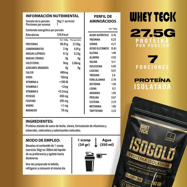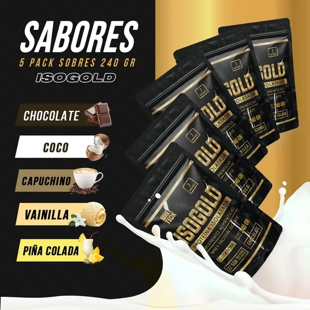 El 5 Pack ISO es un conjunto de cinco sobres individuales de proteína aislada de suero de leche (Whey Protein Isolate), diseñado para quienes buscan optimizar su rendimiento físico, acelerar la recuperación muscular y mejorar su composición corporal. Cada sobre ofrece una dosis precisa y conveniente de proteína de alta calidad, perfecta para llevar al gimnasio, al trabajo o de viaje. Es una proteína isolatada, libre de grasa y de lactosa, de fácil y rápida asimilación, con una concentración del 90% de proteína, ideal para la definición muscular. Esta fórmula sin azúcar y libre de lactosa te brinda 27.5 gramos de pura proteína en cada porción. |