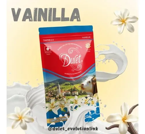 DULET es un lactosuero suizo en polvo, 100% natural, que se presenta en diferentes sabores, incluyendo vainilla. Este producto es una fuente de proteína de alta calidad, que contiene 41 bioelementos (11 vitaminas, 11 minerales y 19 aminoácidos esenciales) y se considera libre de azúcar, lactosa, caseína y grasa. Características de DULET Sabor Vainilla Origen: suizo. Formato: Suero deshidratado en polvo. Composición: Contiene 11 vitaminas, 11 minerales y 19 aminoácidos esenciales, y es libre de lactosa y caseína. Beneficios: Aporta proteínas de alta calidad, aminoácidos esenciales y bioelementos. Presentación: Viene en un envase de 450 gramos, con sabor a vainilla. Usos: Se puede disolver en agua o leche para crear un batido o utilizarse en recetas de repostería. |