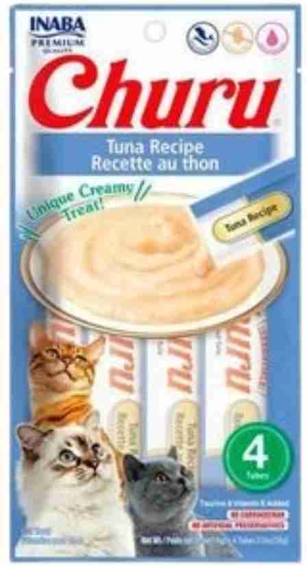 Churu de Tuna es un sabroso alimento con textura cremosa que ayuda a reponer la pérdida de líquido en el cuerpo de tu gato. Puedes darle la pasta directamente o servirla en conjunto a su comida tradicional, además, es un alimento libre de granos y conservantes, especialmente para aquellos gatos que tienen alergias o con problemas gastrointestinales.