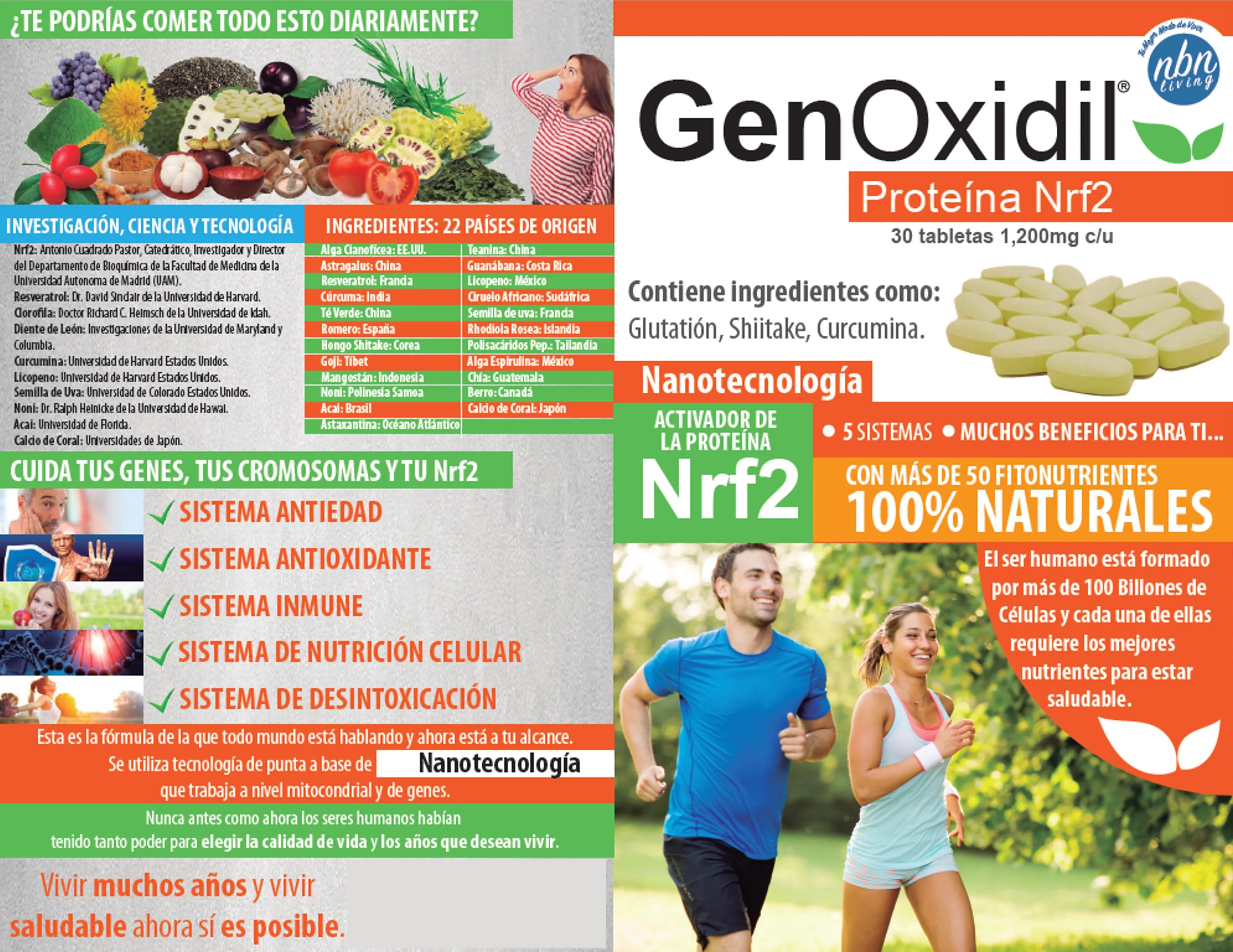 Descripción Genoxidil Suplemento Alimenticio con Fitonutrientes Naturales – Bienestar y Vitalidad Contenido: 30 tabletas de 1.2g c/u DESCRIPCIÓN. Activa tu bienestar desde adentro con el poder de la naturaleza. Genoxidil combina una mezcla premium de extractos vegetales y fitonutrientes naturales en una fórmula diseñada como complemento a tu estilo de vida saludable. COMPLEJO DE ANTIOXIDANTES: Con ingredientes que aportan fitonutrientes reconocidos por su contenido natural de compuestos bioactivos. EXTRACTOS VEGETALES: mezcla de resveratrol, ganoderma, shiitake, goji y astragalus. AFA Y CISTEÍNA BIOACTIVA: componentes de origen natural utilizados tradicionalmente como apoyo en el bienestar general. FÓRMULA INTEGRAL: acompañada de vitaminas, aminoácidos y minerales para complementar la nutrición diaria. CARACTERÍSTICAS Aporta antioxidantes de origen natural. Complementa la dieta con fitonutrientes y extractos herbales. Ideal para quienes buscan acompañar su rutina de alimentación saludable. MODO DE USO Tomar 1 tableta al día con un vaso de agua. NOTA IMPORTANTE: • Este producto es un suplemento alimenticio, no es un medicamento. • No debe utilizarse como sustituto de una dieta equilibrada. • No se recomienda en embarazo, lactancia ni en menores de 12 años. • Mantener en lugar fresco y seco, fuera del alcance de los niños |