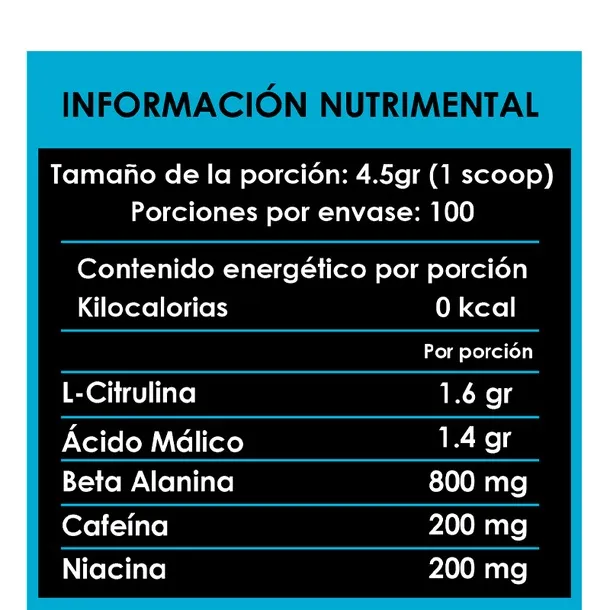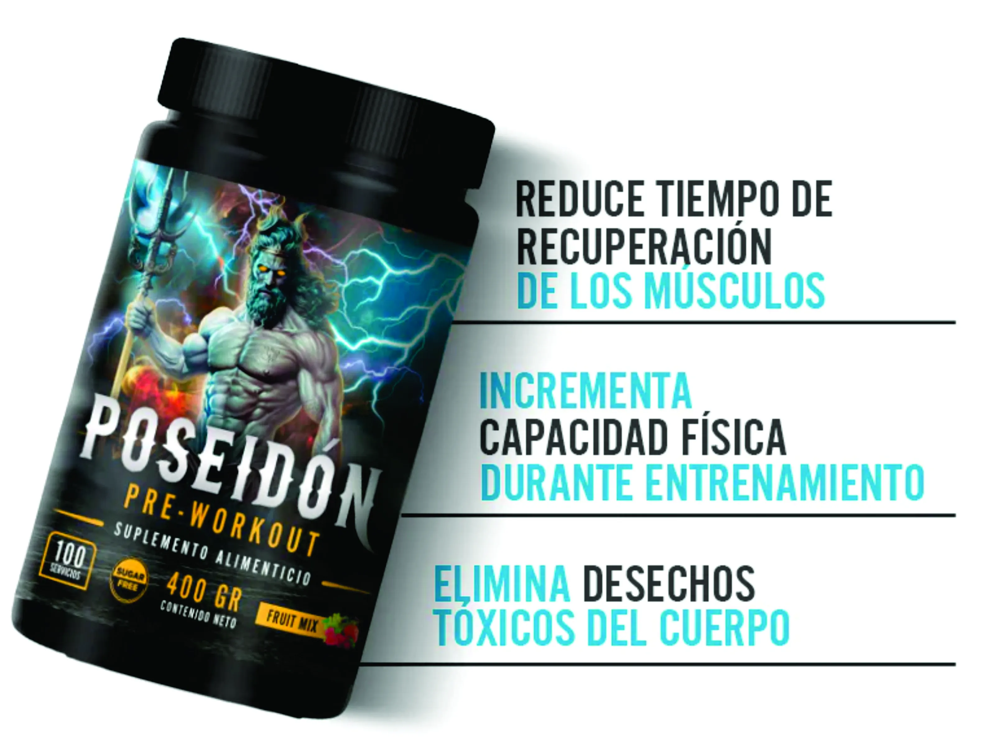 Poseidón es un potente PREWORKOUT que esta desarrollado con una fórmula de grado farmacéutico, que es altamente efectiva para llevar tu entrenamiento a otro nivel con una mayor intensidad y eficacia, logrando un rendimiento superior y mejores resultados. Poseidón Pre-Workout es un suplemento pre-entrenamiento de alta potencia diseñado para maximizar tu rendimiento físico y mental. Formulado con ingredientes de calidad, este pre-entreno te proporciona energía explosiva, enfoque mental y resistencia mejorada para llevar tus entrenamientos al siguiente nivel. INGREDIENTES: L-Citrulina, Ácido Málico (Malato de Citrulina) Arginina, Beta Alanina Cafeína Niacina Saborizantes y colorantes naturales. |