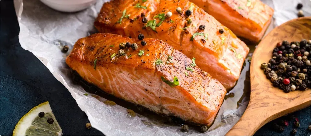Descubre el sabor intenso y la textura firme del Salmón Salvaje Calidad Premium, capturado en aguas libres y preservando su código de sostenibilidad. Este salmón salvaje ofrece un perfil de grasa equilibrado, con notas claras de ponzu marina y un acabado suave que se deshace en el paladar. Su color rosado natural, marcado por una grasa intramuscular bien distribuida, garantiza jugosidad y aroma mediterráneo en cada bocado. |
