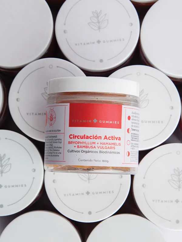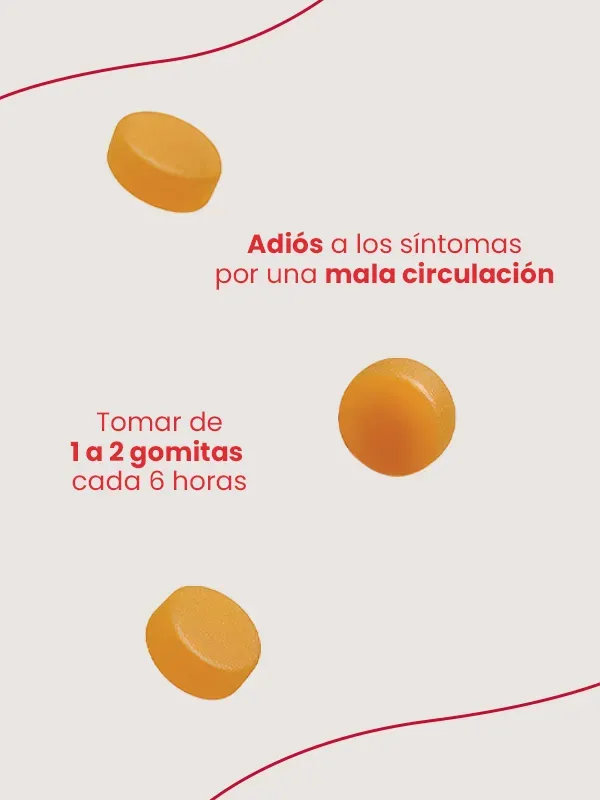 BENEFICIOS: Auxiliar en trastornos de la circulación, insuficiencia venosa o várices, hinchazón, adormecimiento o cansancio en extremidades por falta de circulación. Mejora el flujo sanguíneo de tu cuerpo de una manera natural por sus ingredientes como Bryophyllum, Hamamelis y Bambusa Valgaris. No contienen azúcar añadida, libres de gluten, sin colorantes artificiales. MODO DE USO: Masticar 1-2 gomitas cada 6 horas. Administrar a partir de los 12 años.